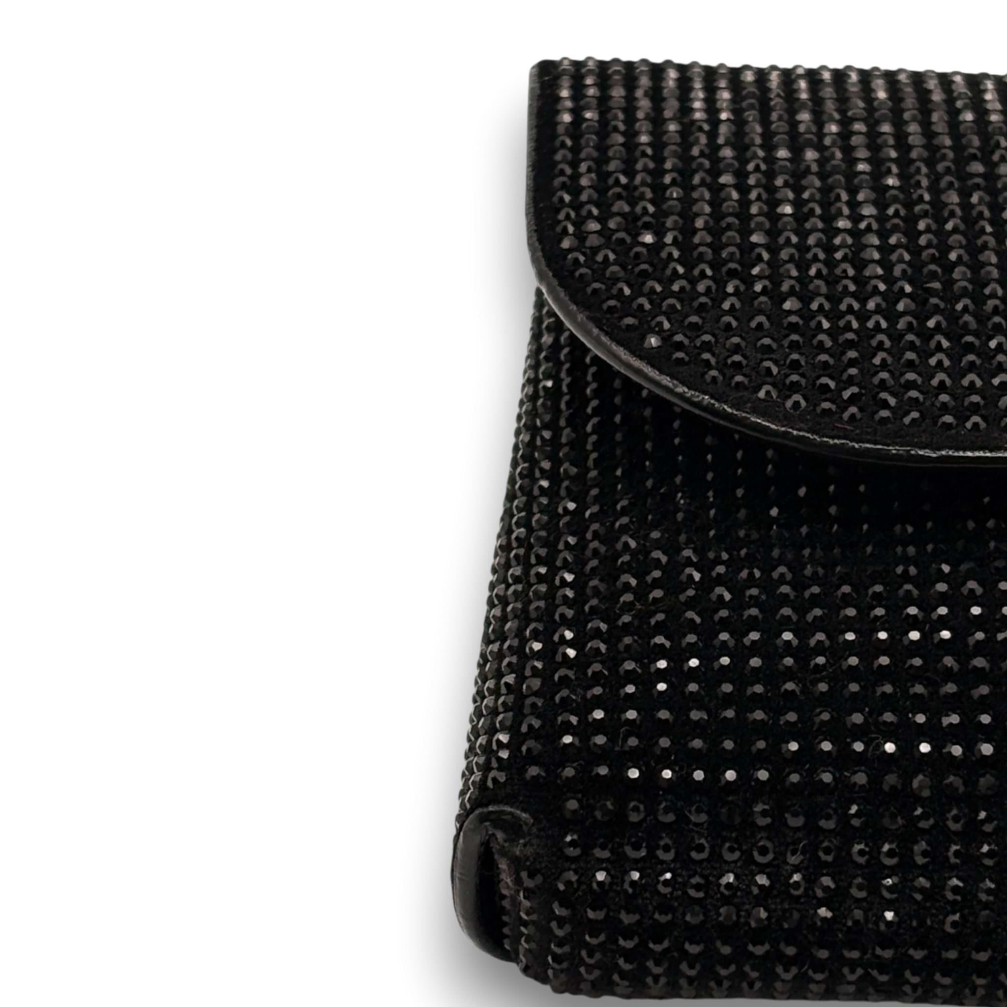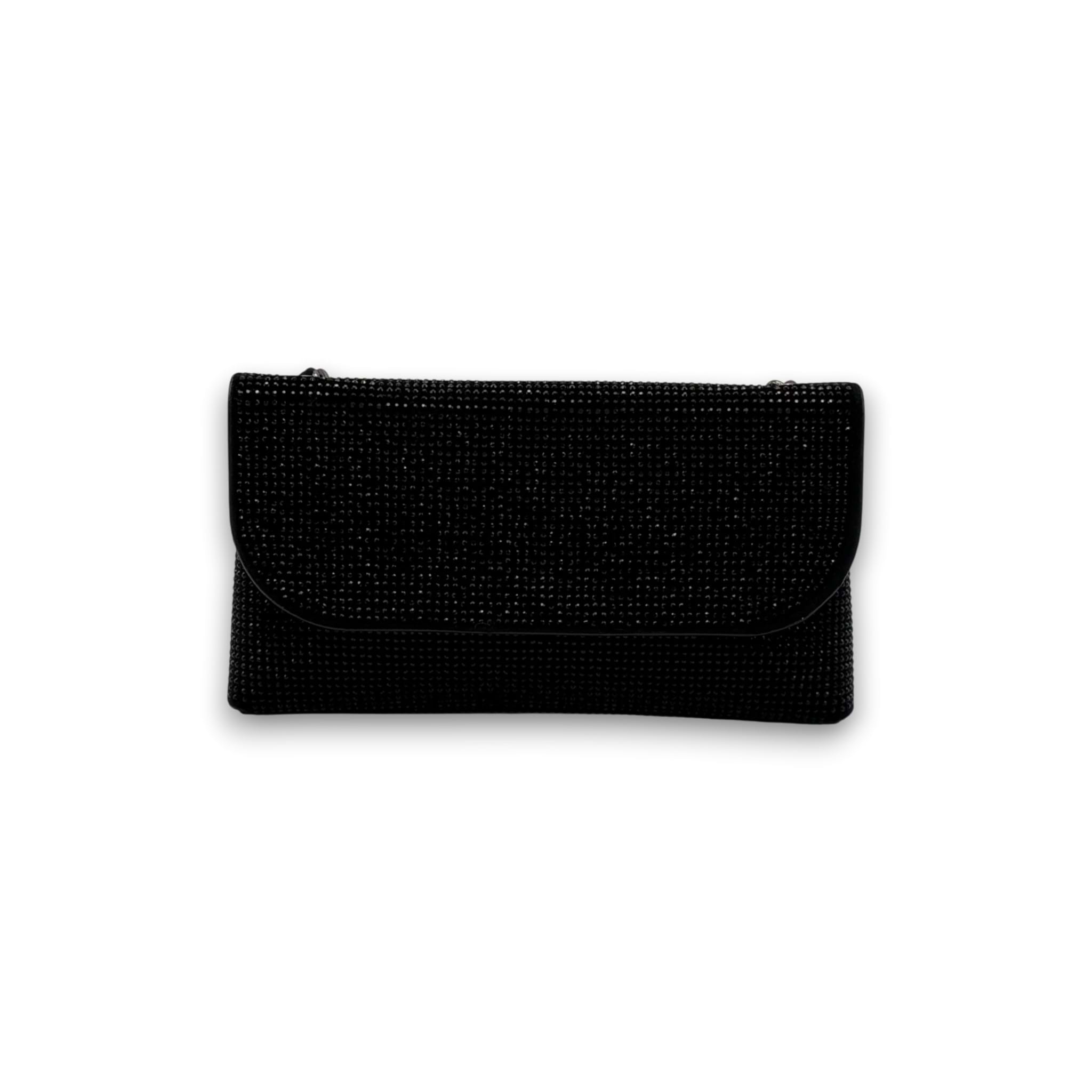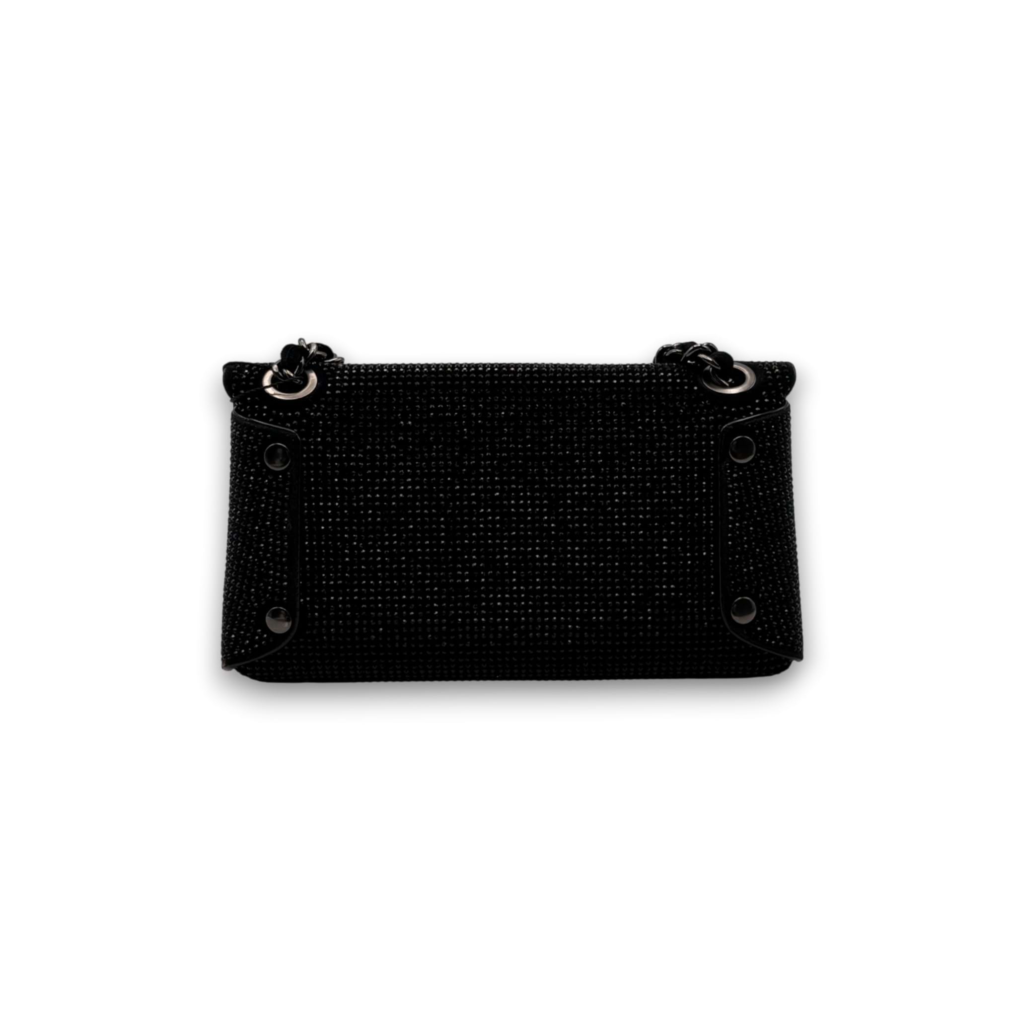 Kompakte Abendtasche mit feiner Glitzerstruktur und schwarzer Kettenhenkel. Lässt sich elegant als Clutch oder lässig über der Schulter tragen und rundet jedes Outfit mühelos ab.